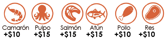 Atún $199 Camarón $210 Salmón $220